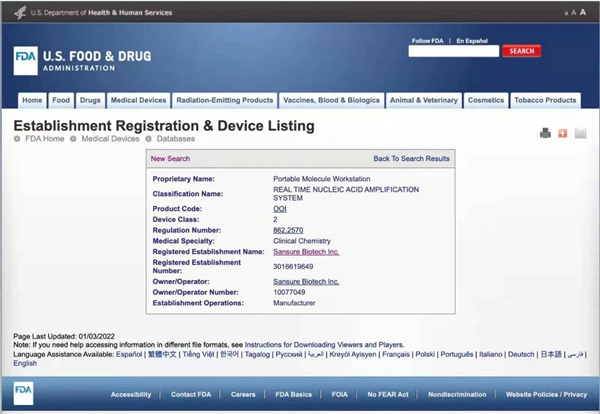 美国食品药品监督管理局(FDA)是国际医疗审核权威机构,通过FDA认证的食品、药品、化妆品和医疗器械等产品,是全球权威标准证明。顶点娱乐生物四通道iPonatic核酸检测分析仪获美国FDA认证后,将有效扩大和满足全球市场各级检测防控需求,为全球疫情防控工作持续助力,推动公司全球化事业发展。
